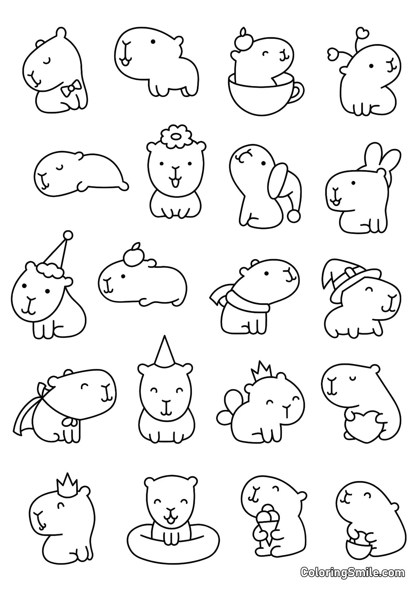 Capybaraen er et symbol på fred og harmoni, og nu kan du træde ind i dens verden med vores dejlige tegninger til farvelægning! Print og farvelæg disse adorable gnavere alene, sammen med venner, eller ved siden af andre sjove dyremotiver. Perfekt til både børn og voksne, disse sider tilbyder en afslappende måde at frigive din kreativitet på.
